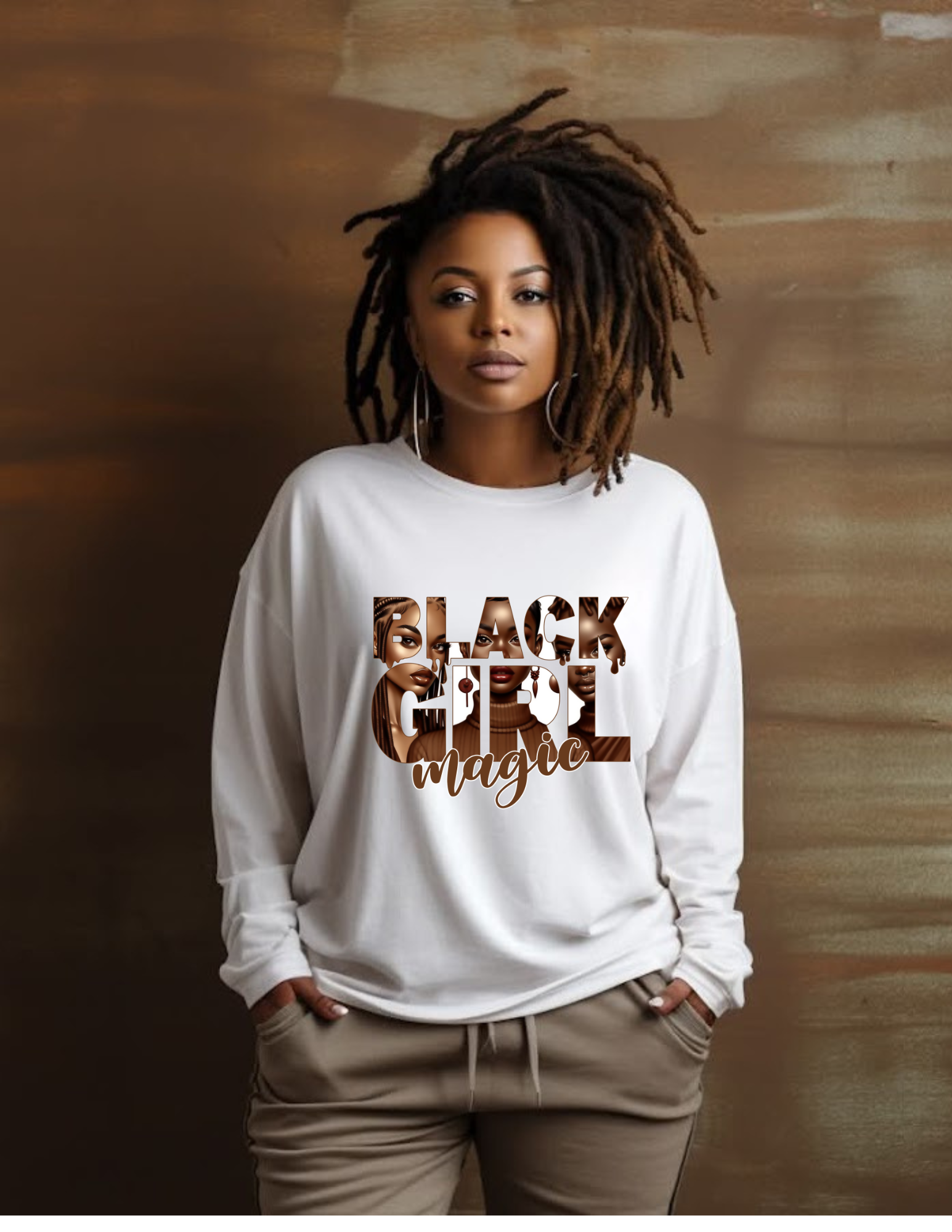 The Black Girl Magic sweatshirt is more than apparel—it's a statement of confidence, resilience, and unapologetic excellence. Featuring bold, textured lettering filled with rich melanin tones and elegant script, this design honors the magic that lives within every Black woman and girl. Celebrate Black excellence with our Black Girl Magic sweatshirt. Premium comfort, bold design, and powerful messaging. Perfect for everyday empowerment and gifting.