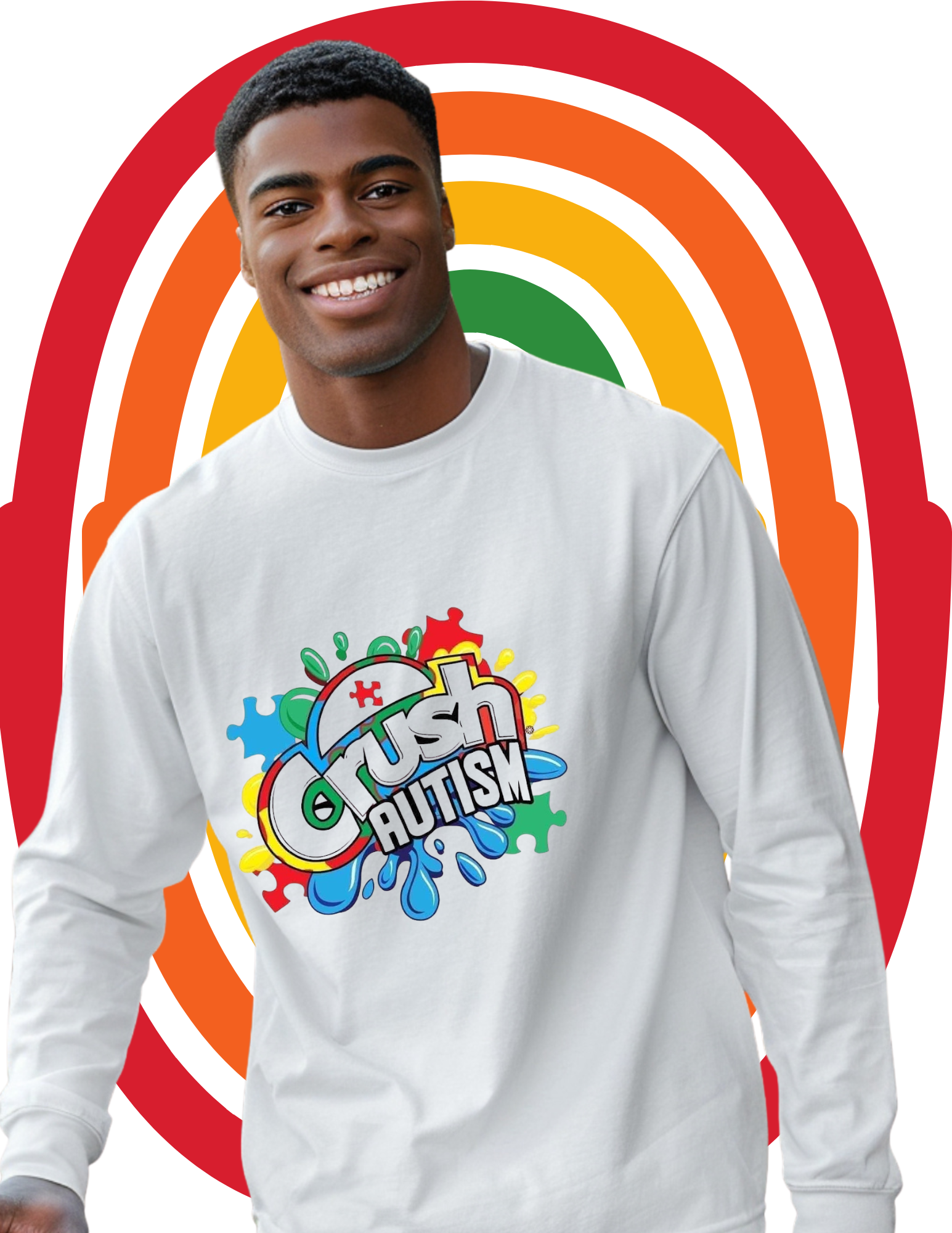 Make a bold statement with this vibrant "Crush Autism" design featuring an explosion of energetic paint splashes in red, blue, green, and yellow. Wear your advocacy with pride and help crush stigma while raising awareness for autism acceptance and understanding.