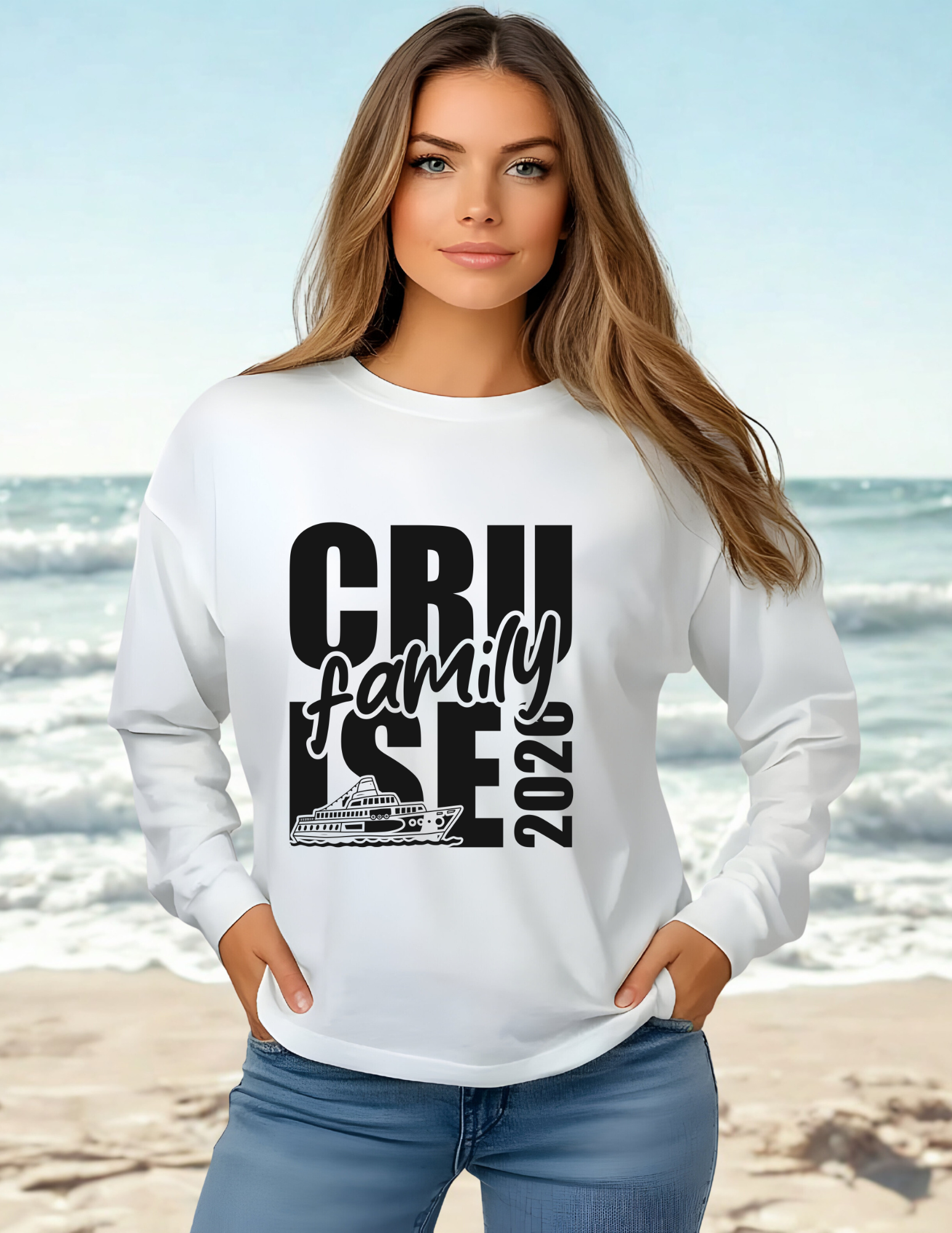 # FAMILY CRUISE 2026 Make unforgettable memories with matching apparel that celebrates your family adventure. This premium piece captures the excitement of your 2026 cruise getaway with bold, expressive design that brings everyone together. Perfect for coordinating outfits on embarkation day, port stops, or casual ship moments—wear your family bond with pride. Comfortable, high-quality construction ensures you'll look and feel great throughout your voyage. Create the ultimate keepsake from your journey and spark conversations with fellow travelers who share your love of family travel.
