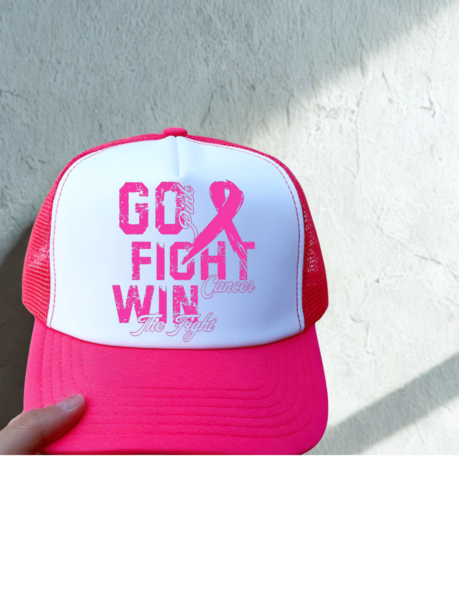 Stand strong with the GO FOR THE WIN (CANCER) trucker hat, a symbol of courage and hope. Crafted for comfort with a breathable mesh back and adjustable fit, this hat empowers you to support cancer awareness and show your fighting spirit every day. Make your statement loud and clear—go for the win against cancer.