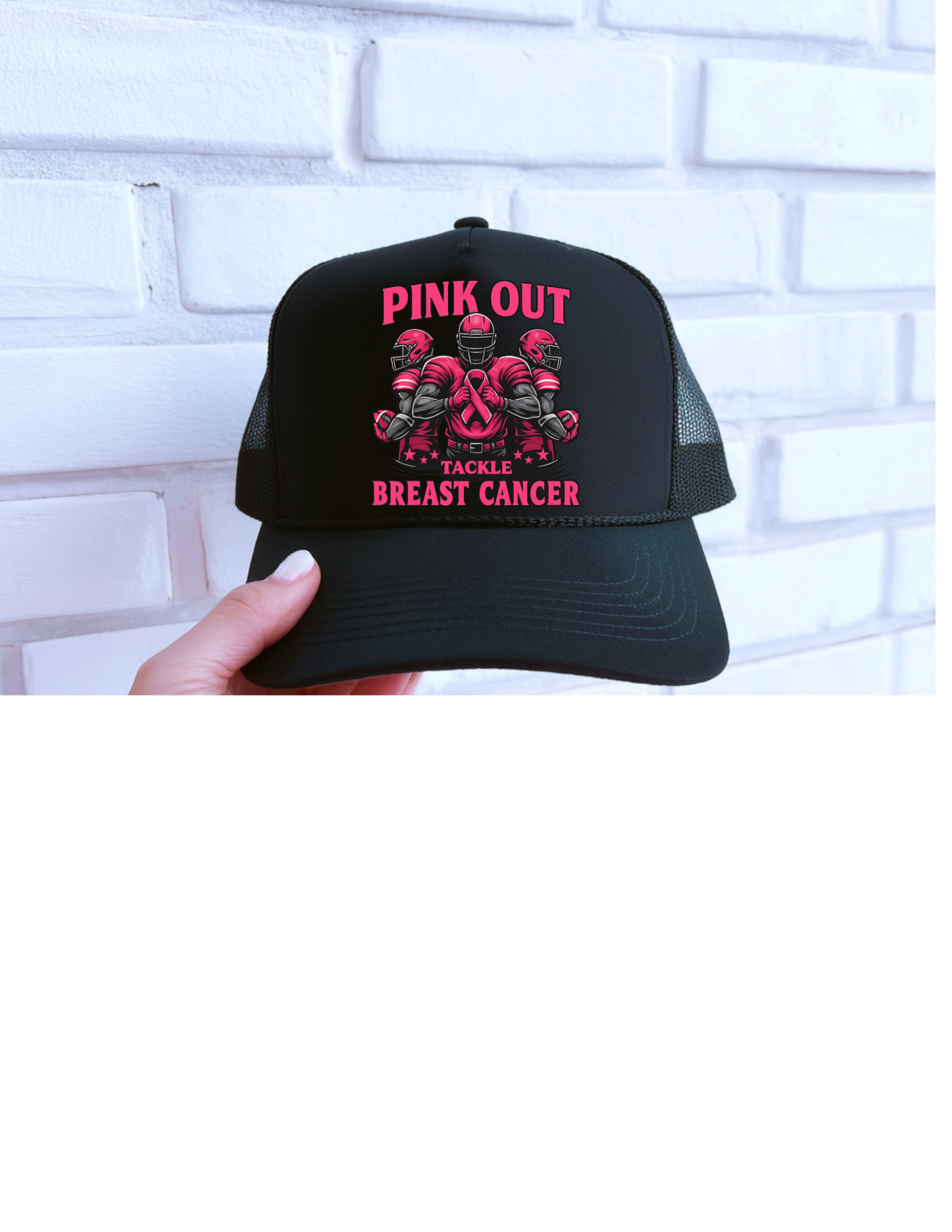 Support the fight against breast cancer with the Pink Out Tackle Breast Cancer trucker hat, designed for football fans and advocates alike. This vibrant pink hat combines sporty style with a powerful message, making it perfect for game days and everyday wear. Show your commitment to the cause while staying comfortable and looking sharp.